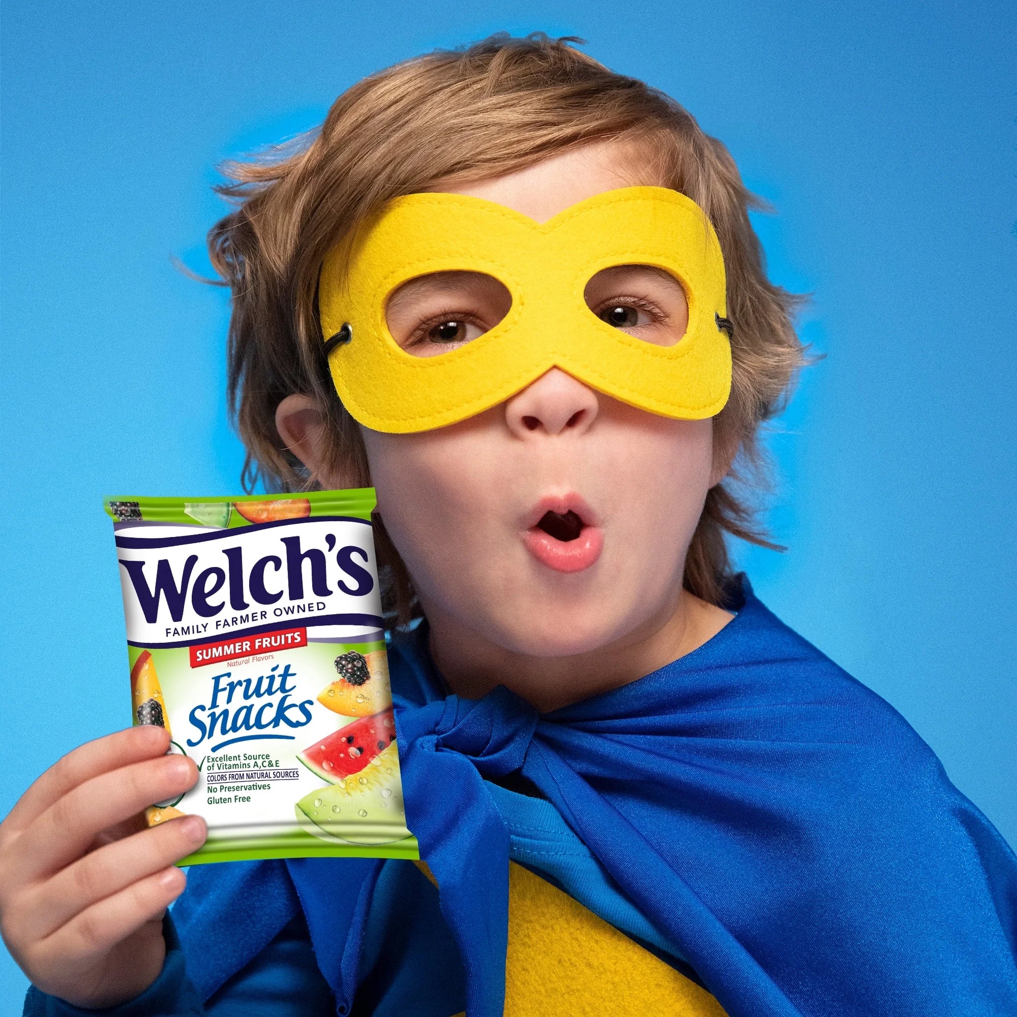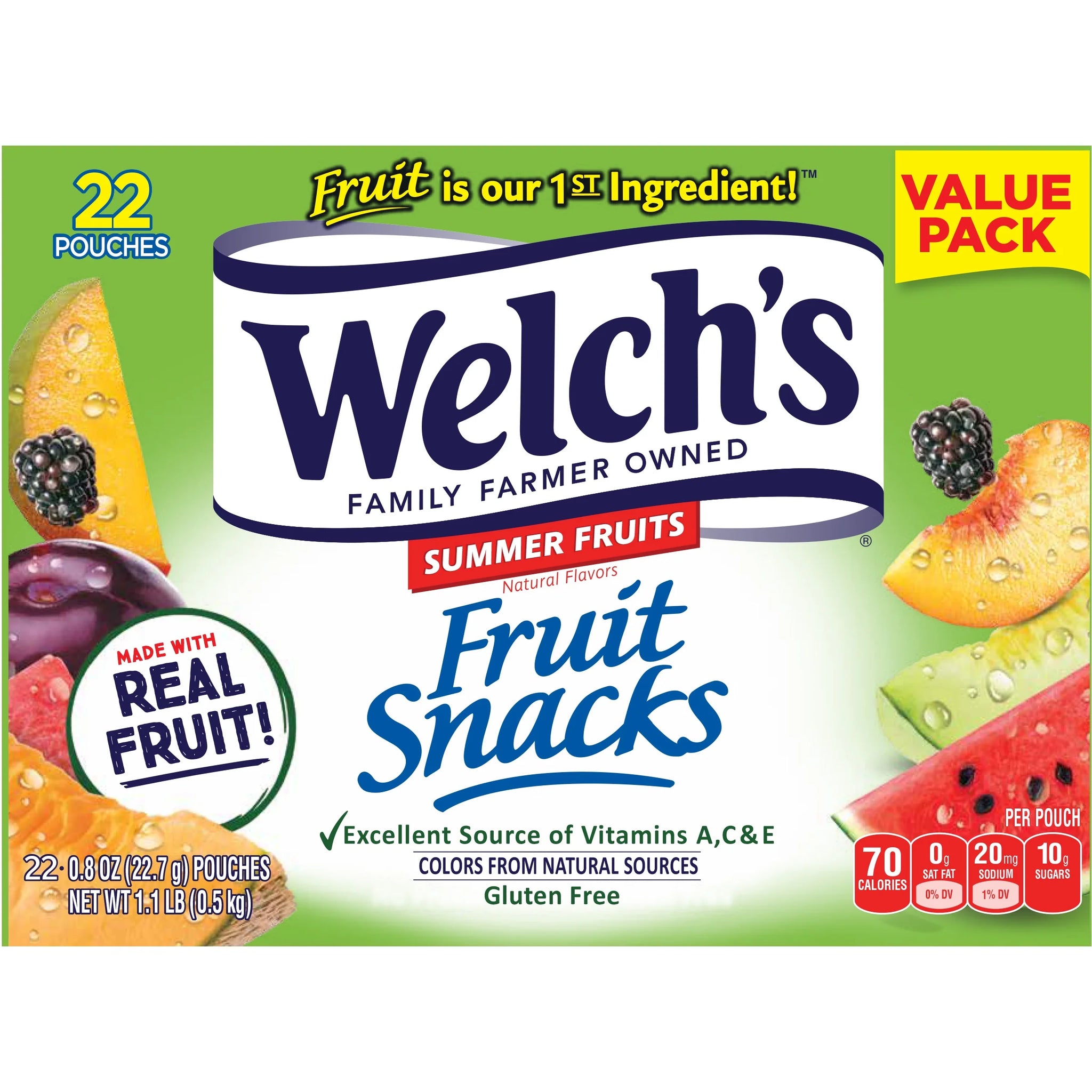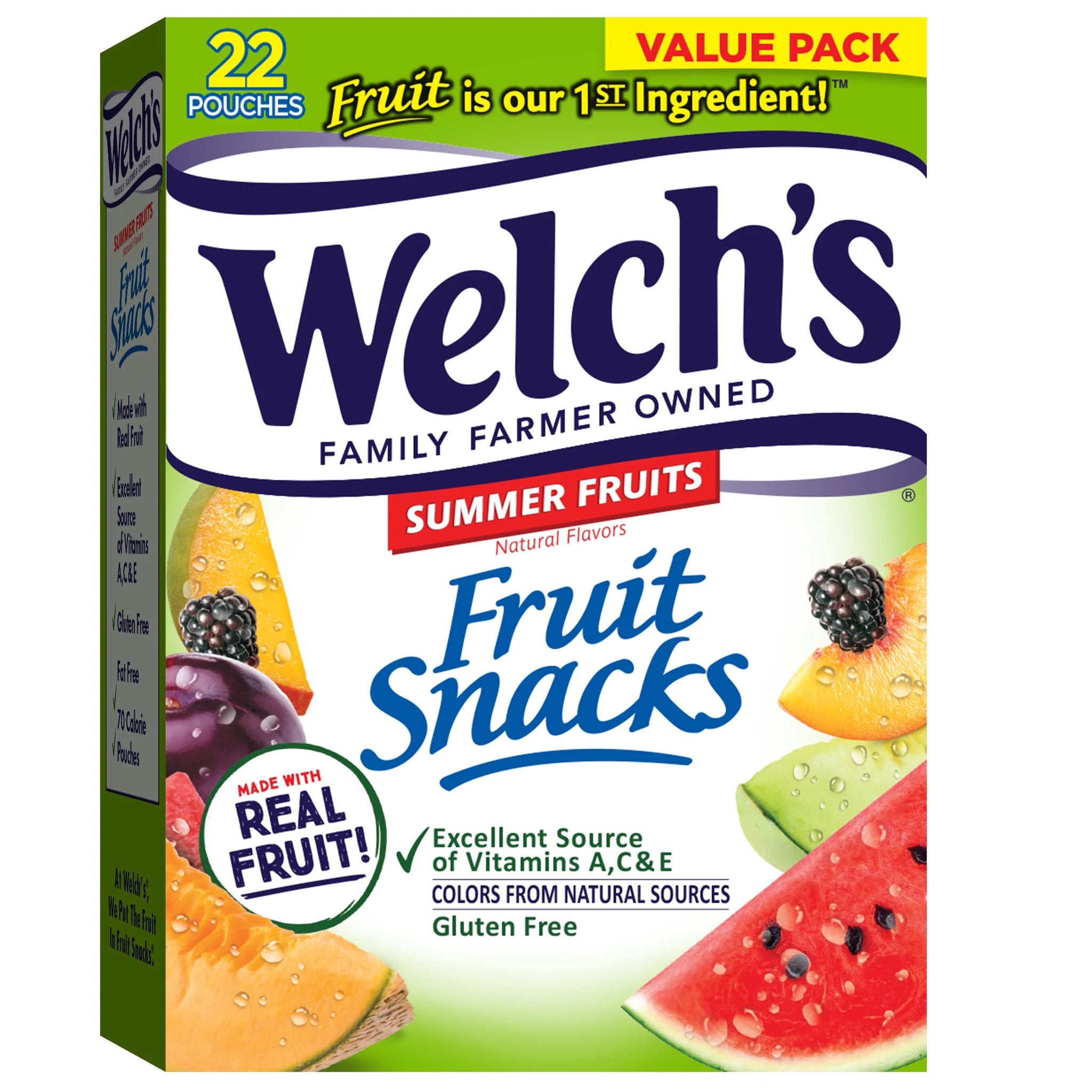 Enjoy the naturally fruity taste of Welch's Fruit Snacks, made with Whole Fruit as the first ingredient for a soft, chewy snack the whole family will love. Bursting with a variety of fun fruit shapes and flavors, these gluten free snacks are perfect for school, work, road trips, or anytime cravings. Each convenient snack pack is individually portioned and ideal for lunchboxes, purses, backpacks, and desk drawers. Welch's Fruit Snacks are an excellent source of Vitamin C, A & E and are both fat free and gluten free, offering a feel-good option for everyday snacking. Whether you're grabbing a few snack packs or stocking up with a snack box you’ll always have a delicious, family-favorite snack ready to go. With Welch's Fruit Snacks, snacking is simple, satisfying, and fun.