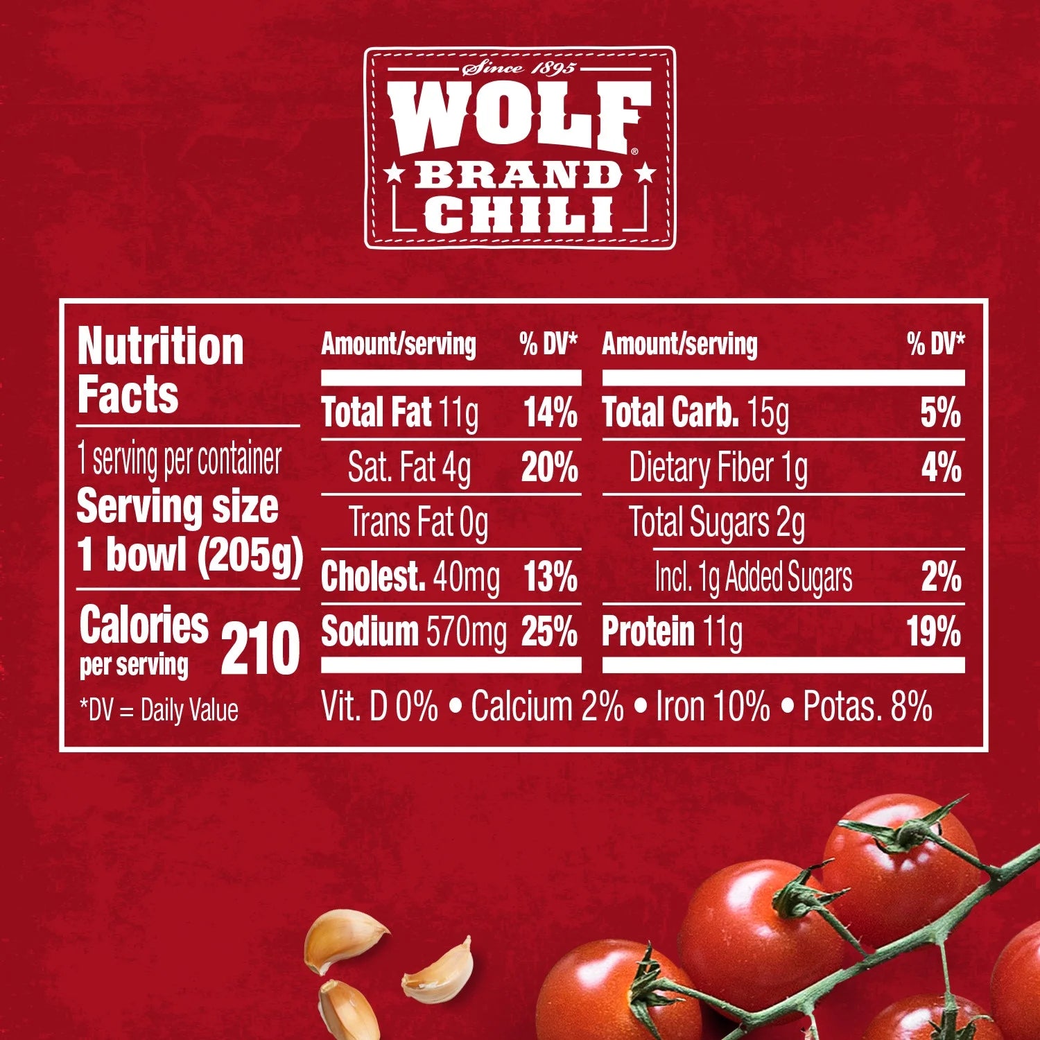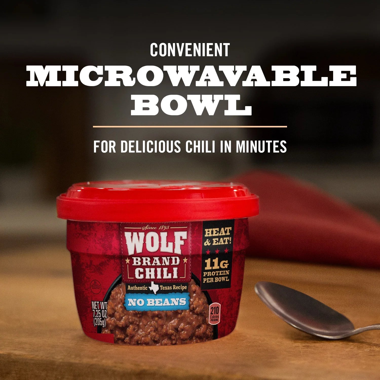 - One 7.25 oz. Wolf Chili No Beans Microwavable Bowl