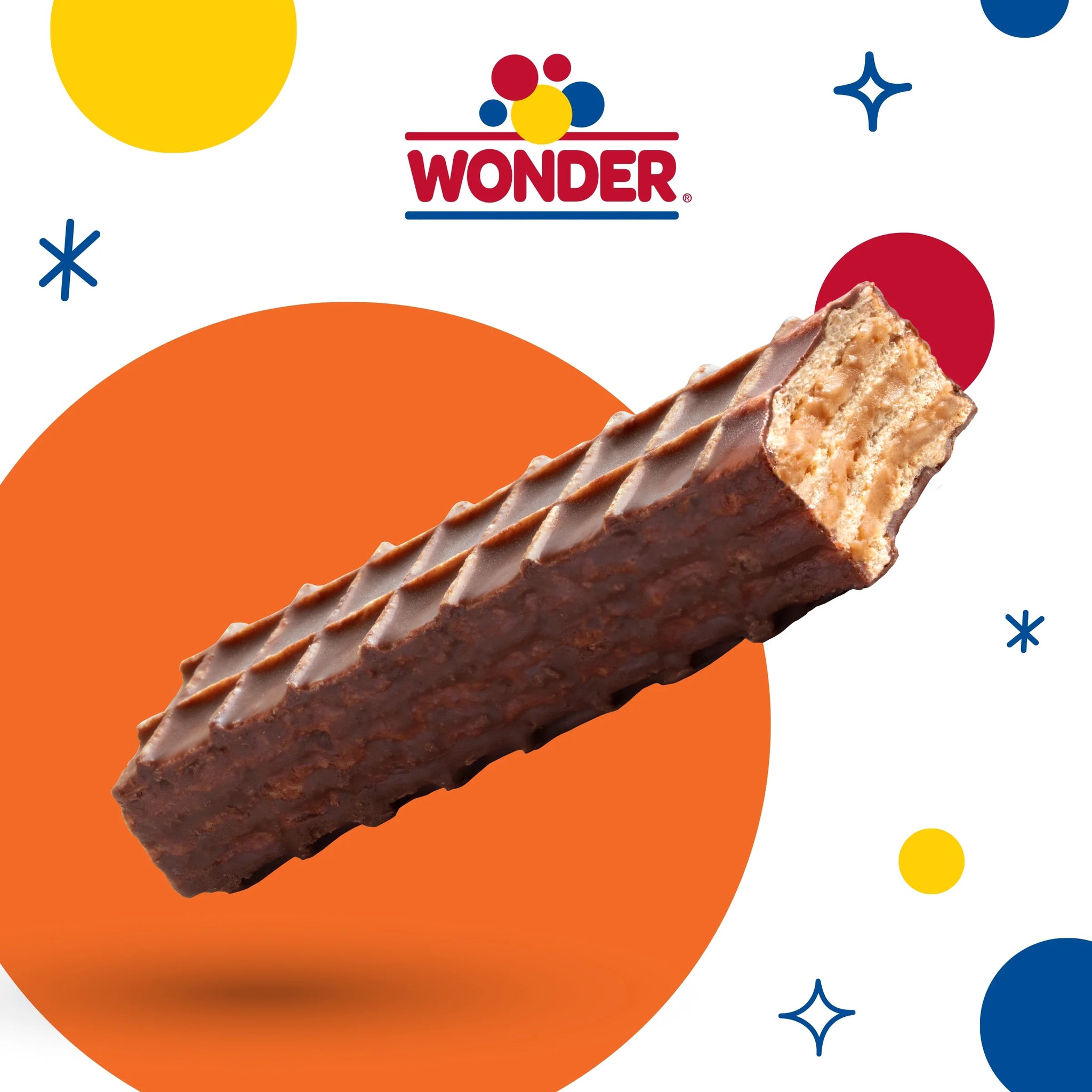 Wonder® Peanut Butter Wafers are sure to be your new go-to snack. This mouthwatering treat features layers of peanut butter-filled crispy wafers enrobed in a delicious chocolate flavored topped coating. Take a bite and experience the goodness inside these delectable Peanut Butter Wafers. Give someone a sweet moment by packing one of these treats in school lunches and picnic baskets. These family-approved shelf-stable sweet treats are sure to provide you all the wonder you know and love. Made with Real Wonder. For over 100 years, the makers of Wonder Bread have been baking up that special taste that reminds us of our childhood and proves, time and time again, that the simple pleasures really are the best. Makes you Wonder what sweet memories the next 100 years will bring.