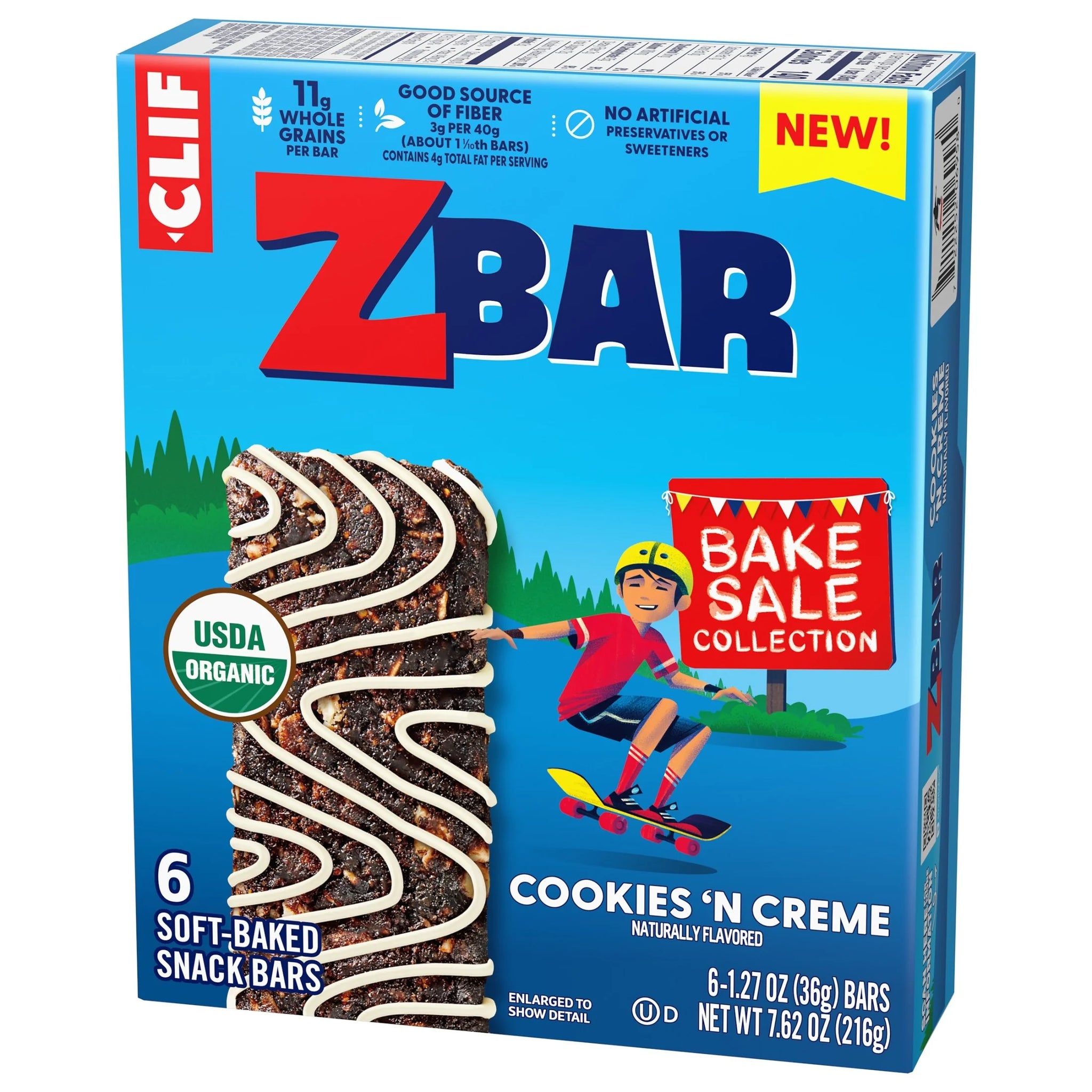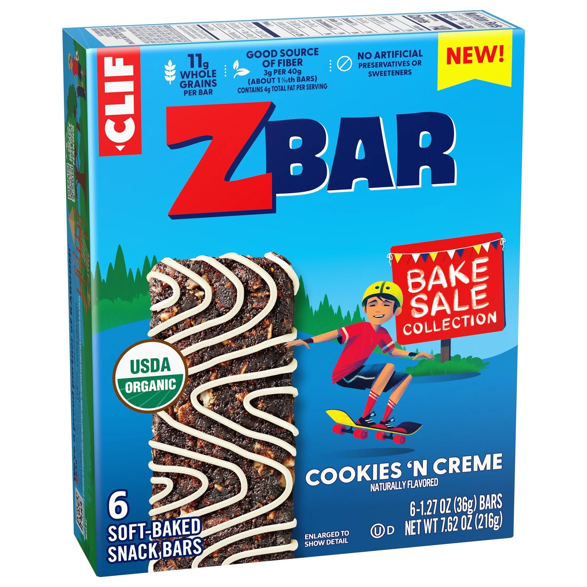 Crafted specially for active kids, Zbar (formerly Clif Kid) granola bars are lunchbox-ready with a chewy, soft-baked texture. Made with ingredients like wholesome rolled oats, these USDA certified organic granola bars have 11g whole grains per bar. Zbar Cookies 'N Creme soft-baked snacks bars are non-GMO with no high fructose corn syrup and no artificial preservatives or sweeteners.