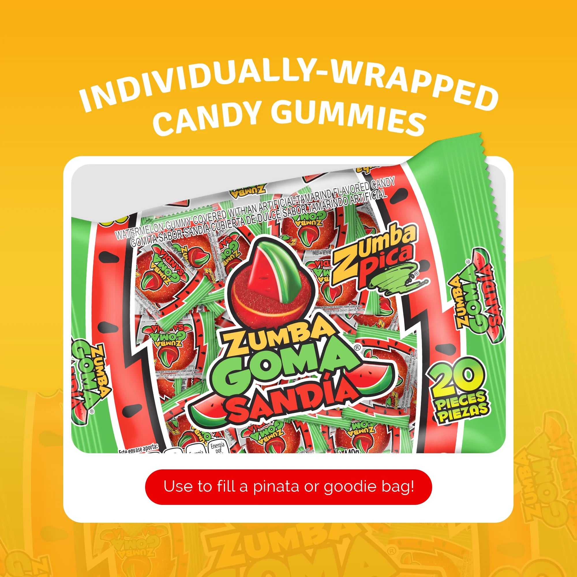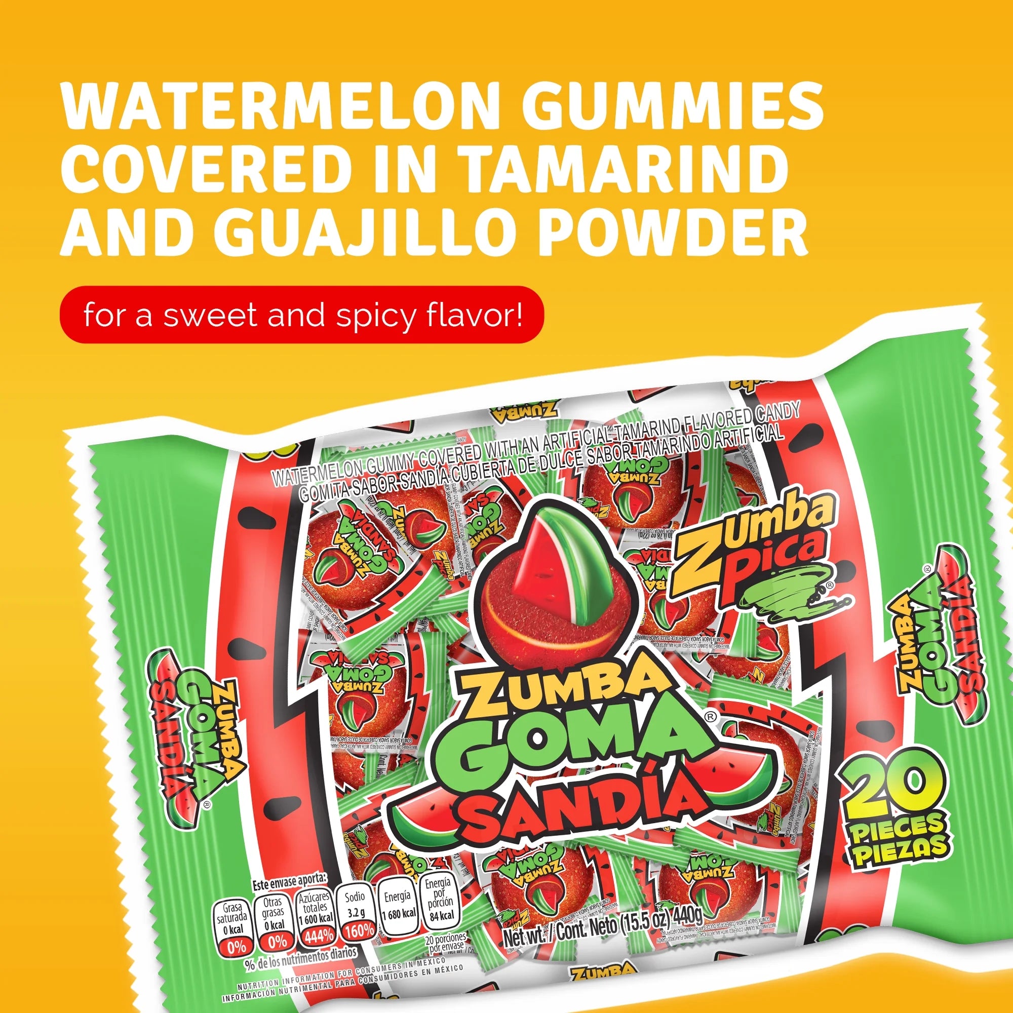 It's not a fiesta without Zumba Pica! Zumba Goma Sandia is a soft watermelon gummy candy covered in tamarind flavoring and guajillo chili powder for the perfect sweet, salty, and spicy candy. These traditional Mexican gummy candies are individually wrapped to preserve freshness and can be used to fill up pinatas, goody bags, or party favors for any celebration. Add some party games and party snacks, and let the fiesta begin!