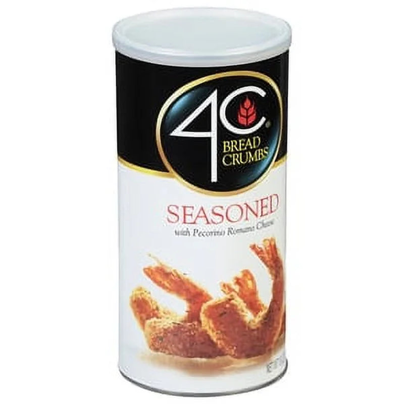 4C Seasoned Bread Crumbs, 15 oz are made with 100% Pecorino Romano Cheese to enhance your favorite dishes NET WT 15 oz (425g) Contains: Wheat, Soy Milk and Sesame. For delicious recipes visit us at www.4C. 4C: of quality. Serving Size: 1/4 Cup (28g) Servings per container: about 15