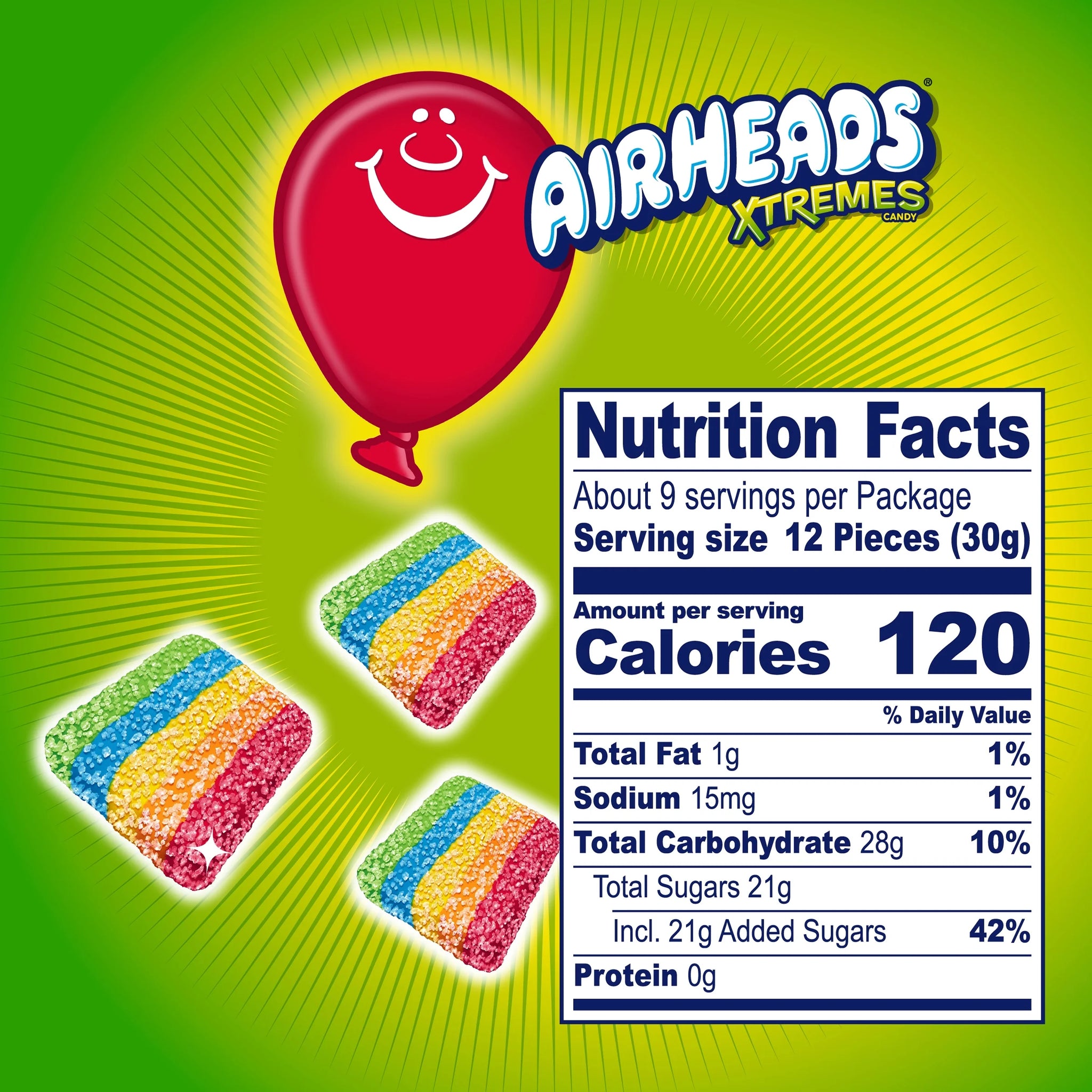 Take your taste buds to the next level with Airheads Xtremes Bites Rainbow Berry candy! This 9 ounce resealable bag of Airheads Xtremes Bites packs a flavor punch. These deliciously soft rainbow candies take your taste buds to the next level with every bite. Enjoy the same intensely fruity, chewy flavor of Airheads Xtremes belts in a smaller, shareable bite. Airheads Xtremes Bites are playfully tart. Grab this sweet snack that is tree nut and peanut free. Nut Free. Condition: New.