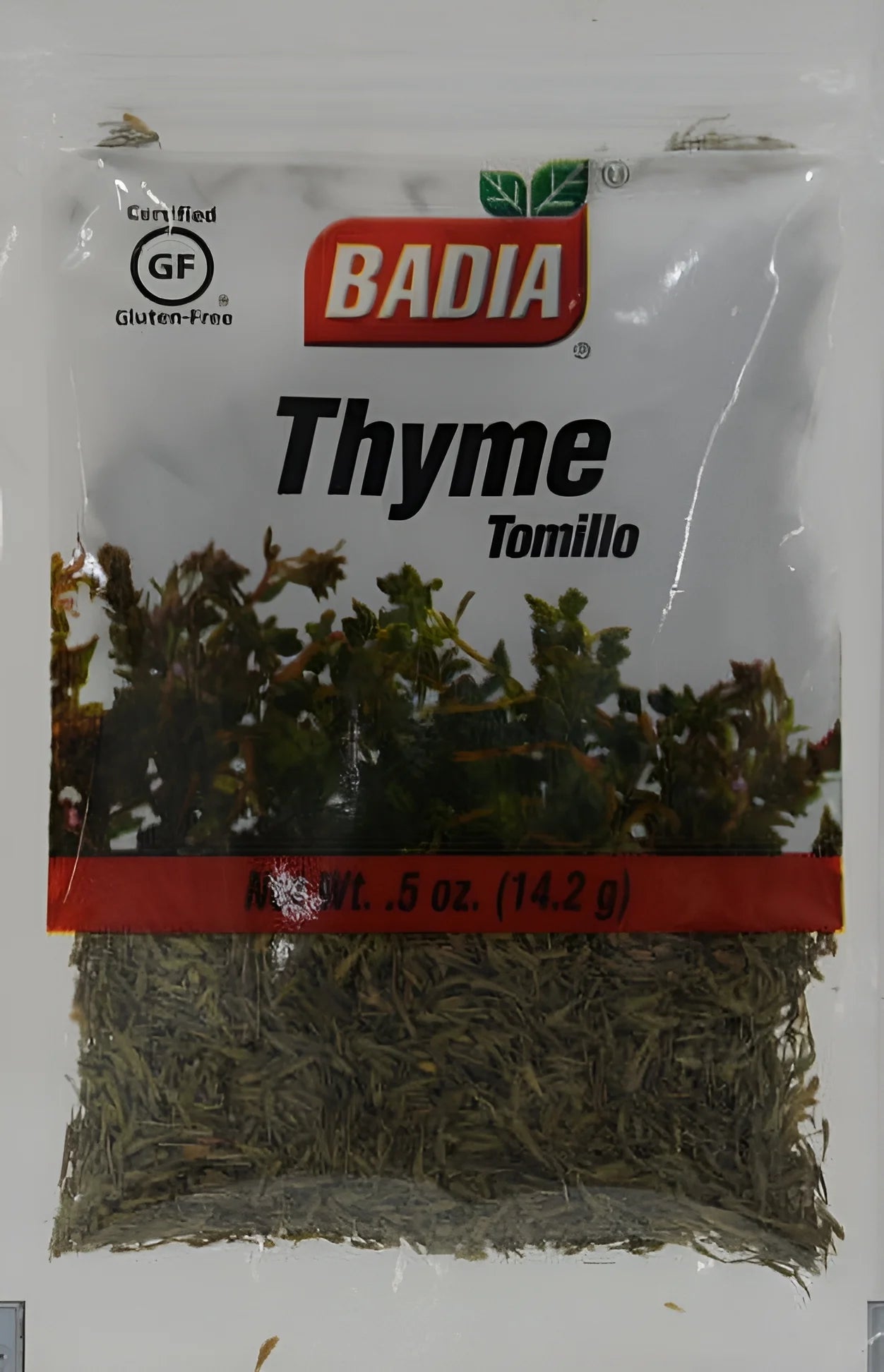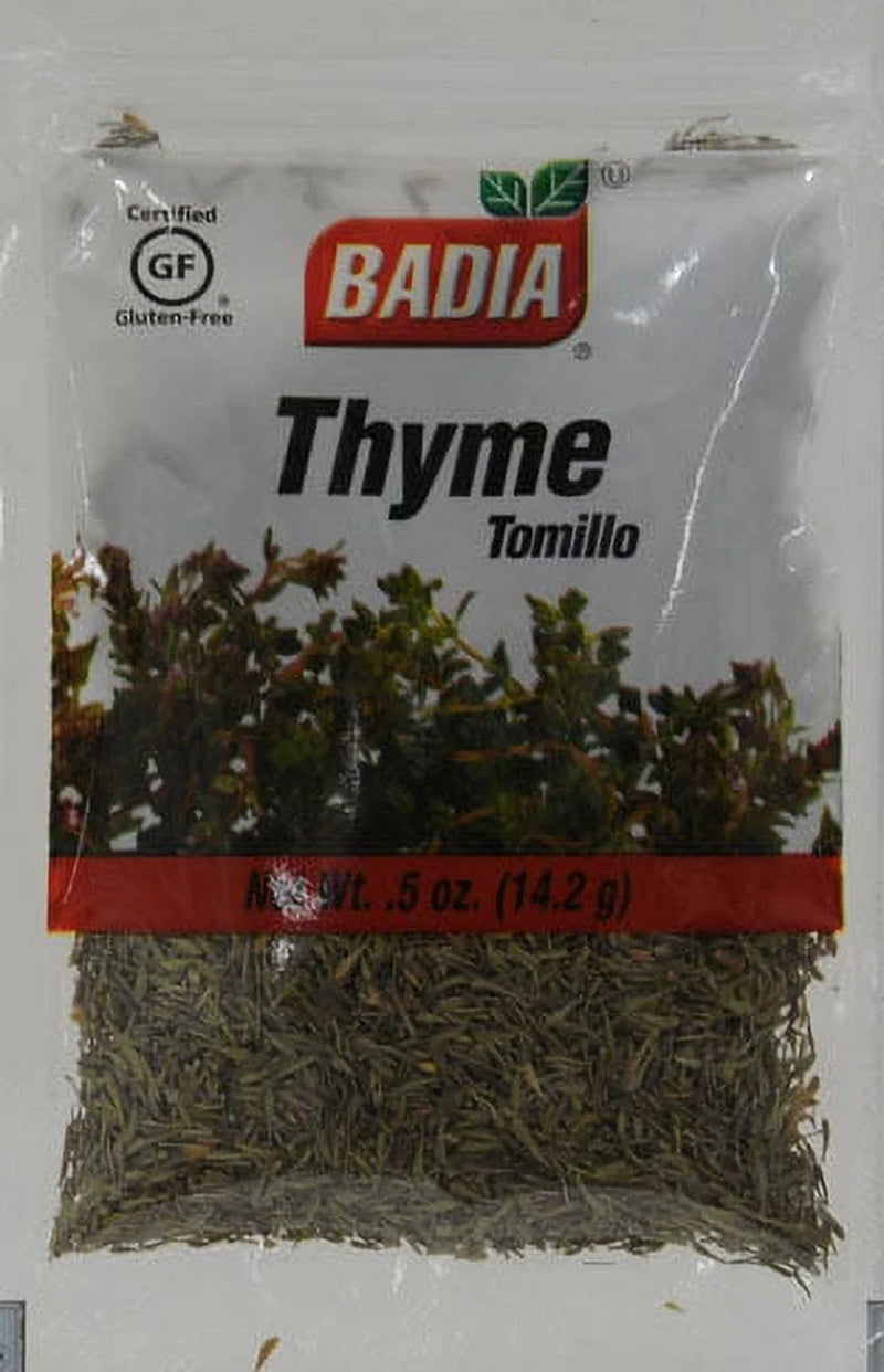 Aromatic thyme leaves from BadiaConvenient 1.5 oz bottle for easy storage and useEnhances flavor in a variety of dishesEssential herb for Mediterranean and Latin American cuisinesAdds a distinct savory note to meats, vegetables, and stews