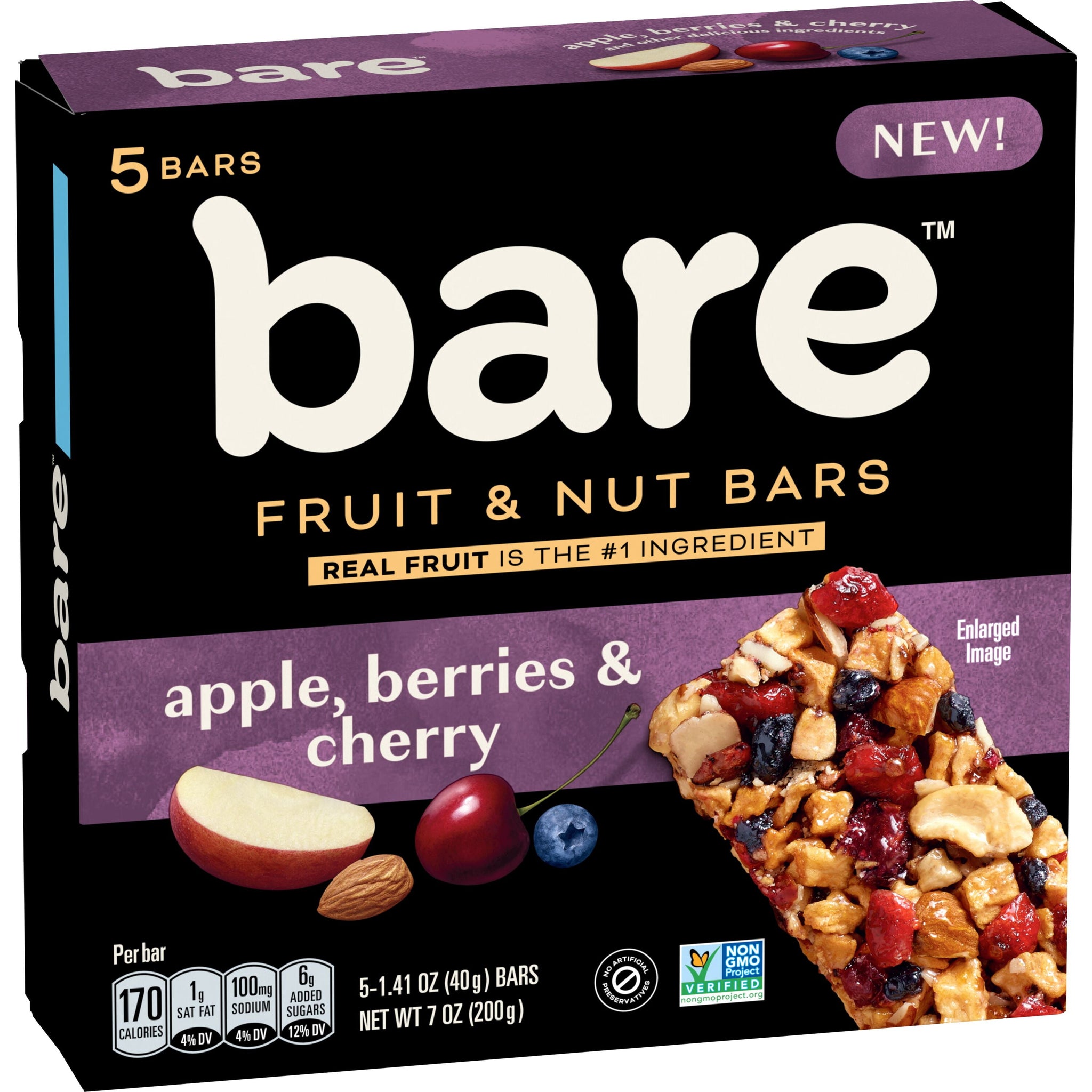 - Includes 5 (1.41 oz) Bare Fruit Nut Bars, Apple, Berries Cherry flavor