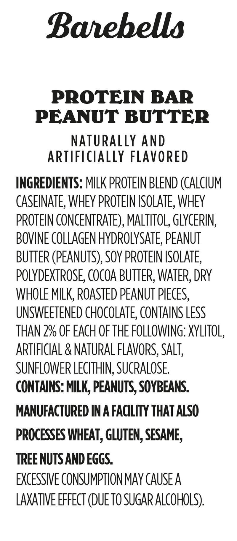 MILK PROTEIN BLEND (CALCIUM CASEINATE, WHEY PROTEIN ISOLATE, WHEY PROTEIN CONCENTRATE), MALTITOL, GLYCERIN, BOVINE COLLAGEN HYDROLYSATE, PEANUT BUTTER (PEANUTS), SOY PROTEIN ISOLATE, POLYDEXTROSE, COCOA BUTTER, WATER, DRY WHOLE MILK, ROASTED PEANUT PIECES, UNSWEETENED CHOCOLATE, CONTAINS LESS THAN 2% OF EACH OF THE FOLLOWING: XYLITOL, ARTIFICIAL & NATURAL FLAVORS, SALT, SUNFLOWER LECITHIN, SUCRALOSE. CONTAINS: MILK, PEANUTS, SOYBEANS./div>